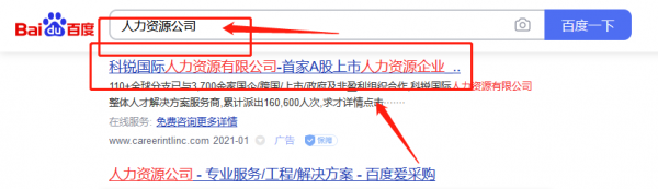 北京科*國際人力資源股份有限公司搜索引擎推廣案例欣賞