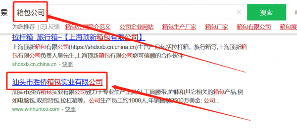 我們公司與 汕頭市勝僑箱包實業(yè)有限公司作中,對這個公司所經(jīng)營的箱包這個行業(yè)的搜索引擎優(yōu)化推廣積累了豐富的經(jīng)驗;同時在該行業(yè)的搜索引擎優(yōu)化推廣等多元化的領(lǐng)域中也有很多的成功的案例;但愿通過我們的合作,能夠幫助到合作伙伴在同行業(yè)中遙遙領(lǐng)先