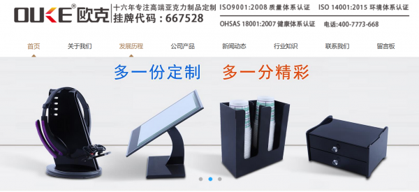 深圳市歐克有機(jī)玻璃制品有限公司選用我司企業(yè)的網(wǎng)站設(shè)計(jì)產(chǎn)品,其seo關(guān)鍵詞為亞克力,. 定制有針對(duì)性的SEO優(yōu)化執(zhí)行方案,根據(jù)盈利模式和核心產(chǎn)品選擇更適合的精準(zhǔn)關(guān)鍵詞。配備專業(yè)SEO優(yōu)化團(tuán)隊(duì),項(xiàng)目前期做好市場(chǎng)、企業(yè)定位、目標(biāo)用戶、盈利模式分析 深圳市歐克有機(jī)玻璃制品有限公司成立于2008年,是經(jīng)深圳市市場(chǎng)監(jiān)督管理局審核的有資質(zhì)的公司。公司地址:廣東深圳龍崗區(qū)龍城街道五聯(lián)朱古石連心路121號(hào)3棟
