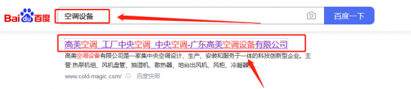 廣東高*空調(diào)設(shè)備有限公司百度排名快照案例欣賞