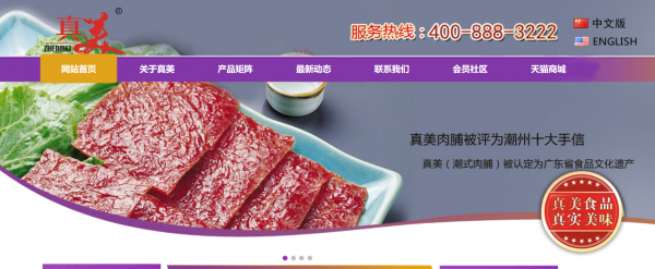 廣東真美食品股份有限公司選用我司企業(yè)的網(wǎng)站設(shè)計優(yōu)化產(chǎn)品,其seo關(guān)鍵詞為食品,鎖定海外排名,覆蓋谷歌,雅虎,必應(yīng)等海外主流搜索引擎,搶占海外市場, 網(wǎng)站打開速度快,用戶體驗好,風(fēng)格多樣化,用戶互動性高,增強(qiáng)用戶黏著度廣東真美食品股份有限公司成立于1945,是經(jīng)潮洲市市場監(jiān)督管理局審核的有資質(zhì)的公司,其統(tǒng)一社會信用代碼:91445103775063859W 。公司地址:潮州市潮安區(qū)江東鎮(zhèn)中橫路北美明溝南