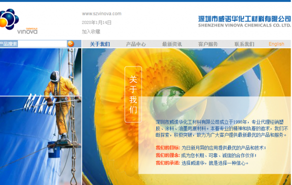 深圳市威諾華化工材料有限公司成立于1998年,專業(yè)代理經(jīng)銷塑膠、涂料、油墨用原材料。本著專業(yè)的精神和執(zhí)著的追求,我們不斷探索,積極突破,致力為廣大客戶提供最新最優(yōu)的產(chǎn)品和服務(wù)。 我們的目標(biāo): 為日新月異的應(yīng)用提供最優(yōu)的產(chǎn)品和技術(shù); 我們的理念: 成為您長期、可靠、誠信的合作伙伴; 我們的承諾: 選擇威諾華,就是選擇一種信心。