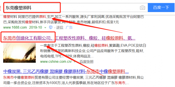 我們公司與東莞市創(chuàng)盛化工有限公司合作中,對(duì)這個(gè)公司所經(jīng)營的橡塑原料這個(gè)行業(yè)提供了百度快照排名,與該公司的合作,更多的客戶讓我們公司為其提供百度快照排名,通過每一次合作,我們公司不斷完善自己,同時(shí)希望合作伙伴在經(jīng)營的路上越來越好。