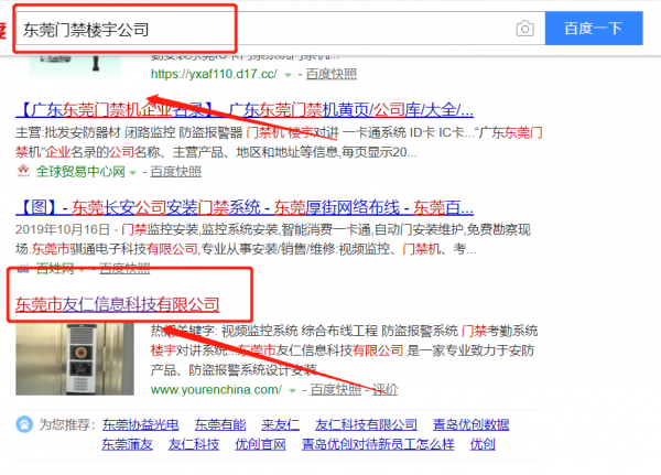 我們公司與東莞市友仁信息科技有限公司合作中,對(duì)這個(gè)公司所經(jīng)營(yíng)的門禁樓宇這個(gè)行業(yè)提供了百度快照排名,與該公司的合作,更多的客戶讓我們公司為其提供百度快照排名,通過(guò)每一次合作,我們公司不斷完善自己,同時(shí)希望合作伙伴在經(jīng)營(yíng)的路上越來(lái)越好。