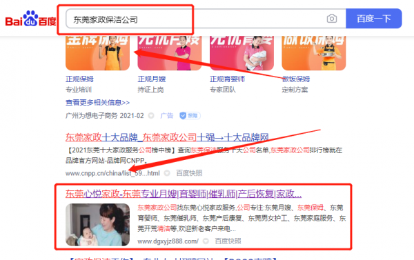 東莞市*悅家政服務(wù)有限公司整站優(yōu)化排名效果展示