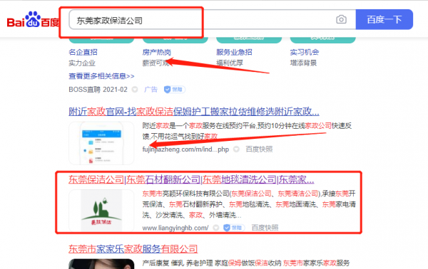 東莞市*穎環(huán)??萍加邢薰具x用我司企業(yè)家政保潔的網(wǎng)站優(yōu)化產(chǎn)品,其SEO關(guān)鍵詞有家政保潔。主要針對百度、搜狗、360等搜索引擎進行快速排名優(yōu)化服務(wù),關(guān)鍵詞排名必要條件是在搜索結(jié)果前3頁,周期15天內(nèi)可優(yōu)化到搜索引擎首頁。東莞市*穎環(huán)??萍加邢薰境闪⒂?019年,是經(jīng)東莞市市場監(jiān)督管理局審核的有資質(zhì)的公司,其統(tǒng)一社會信用代碼:91441900M**42HPL8G。公司地址:廣東省東莞市大嶺山鎮(zhèn)大嶺山南一路1號1039室。