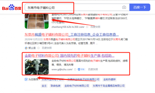 東莞市*助電子材料有限公司百度關(guān)鍵詞排名案例欣賞
