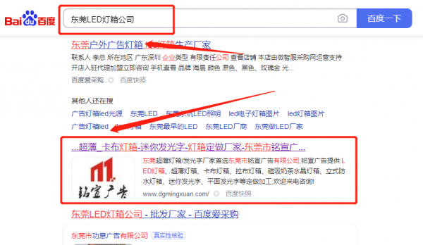 東莞市*宣燈箱器材有限公司網(wǎng)站SEO優(yōu)化快上詞效果展示