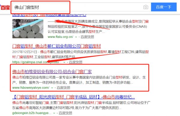 我們公司與佛山市柏維亞鋁業(yè)有限公司合作中,對這個(gè)公司所經(jīng)營的門窗型材這個(gè)行業(yè)提供了關(guān)鍵詞搜索排名,與該公司的合作,更多的客戶讓我們公司為其提供關(guān)鍵詞搜索排名,通過每一次合作,我們公司不斷完善自己,同時(shí)希望合作伙伴在經(jīng)營的路上越來越好。
