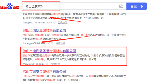 佛山市南海區(qū)*譽(yù)金屬材料有限公司網(wǎng)站SEO優(yōu)化排名效果展示