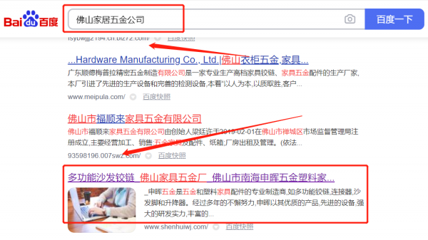 申*五金塑料家具有限公司網(wǎng)絡(luò)推廣排名效果展示
