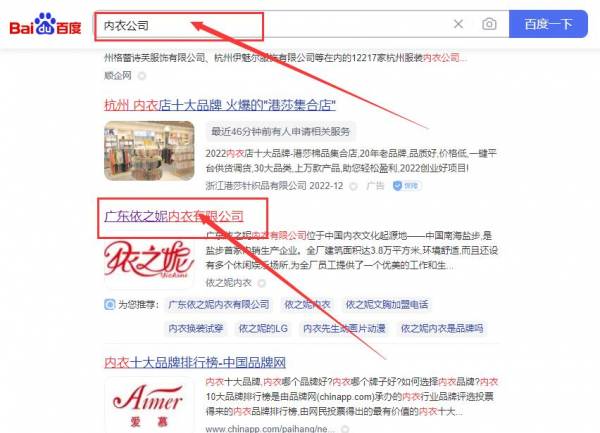 廣東依*妮內(nèi)衣有限公司關(guān)鍵詞推廣排名效果展示