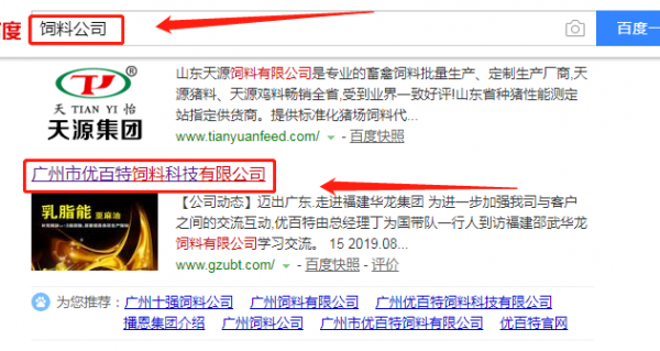 我們公司與廣州市優(yōu)百特飼料科技有限公司合作中,對這個公司所經(jīng)營的飼料這個行業(yè)提供了百度快照排名,與改公司的合作,更多的客戶讓我們公司為其提供百度快照排名,通過每一次合作,我們公司不斷完善自己,同時希望合作伙伴在經(jīng)營的路上越來越好。