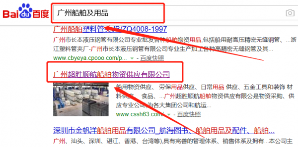 廣州超勝順航船舶物資供應有限公司與本司簽約百度快照排名協(xié)議