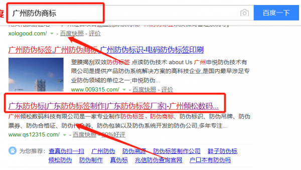 我們公司與廣州傾松數(shù)碼科技有限公司合作中,對(duì)這個(gè)公司所經(jīng)營(yíng)的防偽商標(biāo)這個(gè)行業(yè)提供了百度快照排名,與該公司的合作,更多的客戶讓我們公司為其提供百度快照排名,通過(guò)每一次合作,我們公司不斷完善自己,同時(shí)希望合作伙伴在經(jīng)營(yíng)的路上越來(lái)越好。