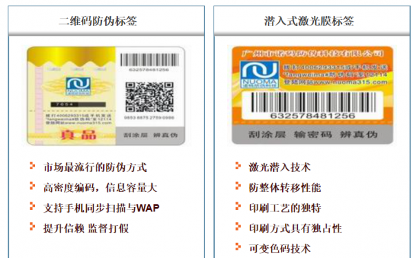 廣州市諾碼防偽科技有限公司是專業(yè)從事企業(yè)信息化產(chǎn)品研發(fā)、生產(chǎn)和銷售的高新技術(shù)企業(yè)。作為國內(nèi)電碼防偽行業(yè)的開拓者、市場引領(lǐng)者和整體解決方案的倡導(dǎo)者,經(jīng)過近十年的精耕細(xì)作,我們建立了覆蓋全國的市場銷售和技術(shù)服務(wù)體系,開發(fā)了系列化的中高端防偽產(chǎn)品,以難仿制、易識別的獨占性技術(shù),經(jīng)受住了市場的嚴(yán)酷考驗,獲得了名優(yōu)企業(yè)的廣泛認(rèn)同和信任。目前,已有各行各業(yè)近千家處于領(lǐng)導(dǎo)地位的跨國公司和國內(nèi)知名企業(yè)選擇使用了我公司的信息化防偽、防竄貨和會員積分管理解決方案和服務(wù)。