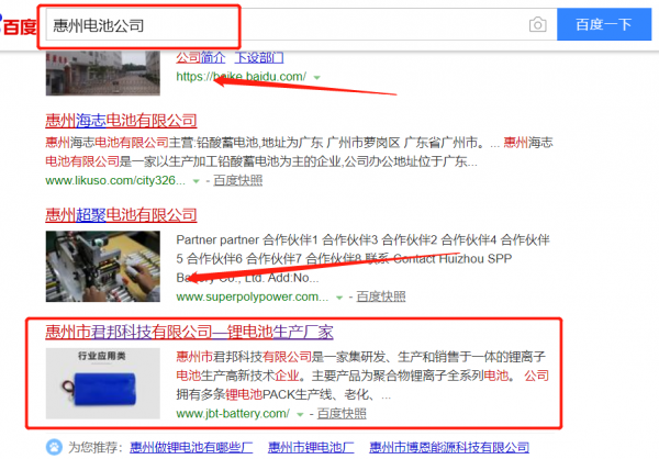 惠州市*邦科技有限公司是一家集研發(fā)、生產(chǎn)和銷售于一體的鋰離子電池生產(chǎn)高新技術(shù)企業(yè)。主要產(chǎn)品為聚合物鋰離子全系列電池。公司擁有多條鋰電池PACK生產(chǎn)線、老化、分容等生產(chǎn)裝備和一大批經(jīng)驗豐富的產(chǎn)業(yè)工人。精湛工藝和科學流程的結(jié)合,確保每一個(下線)產(chǎn)品的合格品質(zhì)。公司興建了大型電池測試中心,先進的電池檢測設(shè)備成為“安全電池”的可靠保證,公司產(chǎn)品因此通過了國際國內(nèi)多家權(quán)威機構(gòu)的認證,成為鋰離子電池模組產(chǎn)品可靠性的優(yōu)秀代表企業(yè)。公司多年來一直奉行“誠信務(wù)實、雙贏發(fā)展、精益求精、持續(xù)改進”為經(jīng)營宗旨,致力于向客戶提供創(chuàng)新易用、動力強勁、安全可靠的綠色環(huán)??沙涠文茉串a(chǎn)品。立足“鋰電池定制”的精確定位,凝聚一批鋰電池行業(yè)專家,組建了包括電化學、電子、工藝、結(jié)構(gòu)等多部類、系統(tǒng)化的研發(fā)團隊,公司的技術(shù)創(chuàng)新能力能夠充分滿足客戶的多樣化、個性化需求?!?br /> 我們公司與惠州市*邦科技有限公司合作中,對這個公司所經(jīng)營的電池這個行業(yè)提供了百度快照排名,與該公司的合作,更多的客戶讓我們公司為其提供百度快照排名,通過每一次合作,我們公司不斷完善自己,同時希望合作伙伴在經(jīng)營的路上越來越好。