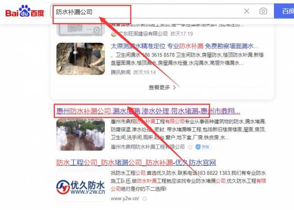 惠州市鼎*防水補(bǔ)漏工程有限公司網(wǎng)站優(yōu)化最快上詞效果展示