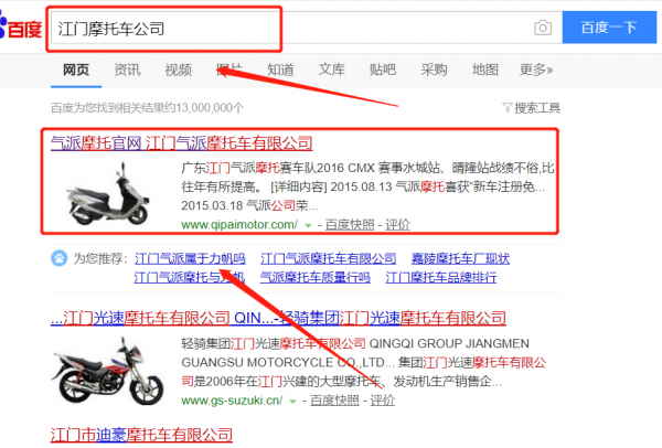 江門氣派摩托車有限公司選用我司企業(yè)摩托車的網(wǎng)站優(yōu)化產(chǎn)品,其SEO關(guān)鍵詞有摩托車。從站內(nèi)到站外,人工智能全新搜索優(yōu)化技術(shù),最快7天關(guān)鍵詞排名上首頁,利用互聯(lián)網(wǎng)營銷手法,多平臺,多樣化進(jìn)行品牌內(nèi)容鋪設(shè),營造企業(yè)正面形象。仙桃市成明化工有限公司成立于2002年,是經(jīng)江門市市場監(jiān)督管理局審核的有資質(zhì)的公司,其統(tǒng)一社會信用代碼:9144070573989986XH。公司地址:廣東省江門市新會區(qū)今古洲經(jīng)濟(jì)開發(fā)區(qū)。
