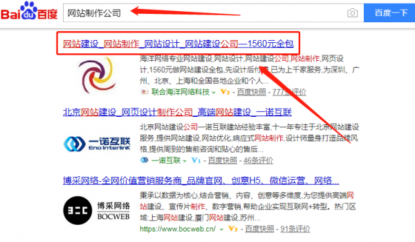 海洋網(wǎng)絡(luò)在百度中網(wǎng)站制作排名第一位