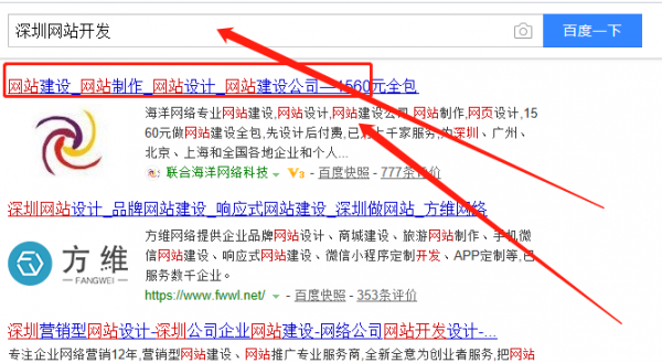 海洋網(wǎng)絡(luò)在百度中網(wǎng)頁(yè)設(shè)計(jì)關(guān)鍵詞中排位第一
