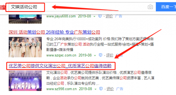 我們公司與深圳市優(yōu)藝美文化傳媒有限公司合作中,對這個公司所經(jīng)營的文娛活動這個行業(yè)提供了百度快照排名,與改公司的合作,更多的客戶讓我們公司為其提供百度快照排名,通過每一次合作,我們公司不斷完善自己,同時希望合作伙伴在經(jīng)營的路上越來越好。