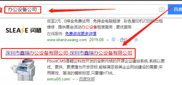 我們公司與深圳市鑫瑞辦公設(shè)備有限公司合作中,對(duì)這個(gè)公司所經(jīng)營的辦公用品這個(gè)行業(yè)提供了百度快照排名,與改公司的合作,更多的客戶讓我們公司為其提供百度快照排名,通過每一次合作,我們公司不斷完善自己,同時(shí)希望合作伙伴在經(jīng)營的路上越來越好。
