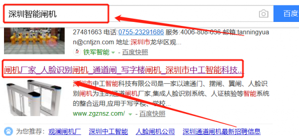 我們公司與深圳市中工智能科技有限公司合作中,對(duì)這個(gè)公司所經(jīng)營(yíng)的智能閘機(jī)這個(gè)行業(yè)提供了關(guān)鍵詞搜索排名,與該公司的合作,更多的客戶讓我們公司為其提供關(guān)鍵詞搜索排名,通過(guò)每一次合作,我們公司不斷完善自己,同時(shí)希望合作伙伴在經(jīng)營(yíng)的路上越來(lái)越好。