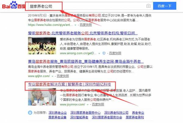 我們公司與深圳市昭億科技合作中,對(duì)這個(gè)公司所經(jīng)營(yíng)的居家養(yǎng)老這個(gè)行業(yè)的百度快照排名積累了豐富的經(jīng)驗(yàn);同時(shí)在該行業(yè)的百度快照排名等多元化的居家養(yǎng)老領(lǐng)域中也有很多的成功的案例;但愿通過(guò)我們的合作,能夠幫助到合作伙伴在同行業(yè)中遙遙領(lǐng)先。