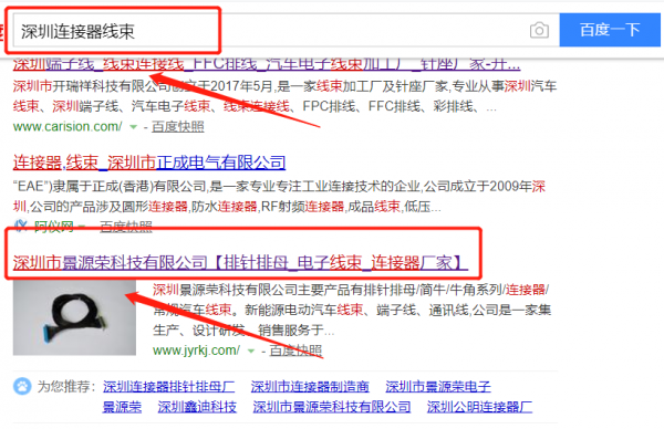 深圳景源榮科技有限公司用我司企業(yè)連接器線束的網(wǎng)站優(yōu)化產(chǎn)品,其SEO關(guān)鍵詞有連接器線束。一對一定制服務(wù),產(chǎn)品經(jīng)理在線支持,無憂售后,適用于各個(gè)企業(yè),提供一站式網(wǎng)絡(luò)營銷服務(wù)。百度搜索引擎優(yōu)化,提升品牌關(guān)鍵詞的正面內(nèi)容信息展現(xiàn),體現(xiàn)良好的口碑宣傳。深圳景源榮科技有限公司成立于2003年,是經(jīng)深圳市市場監(jiān)督管理局審核的有資質(zhì)的公司,其統(tǒng)一社會信用代碼:91440300MA5EPWB96B。公司地址:深圳市寶安區(qū)石巖街道寶源社區(qū)麻布新村第二工業(yè)區(qū)5號二棟二、三層。