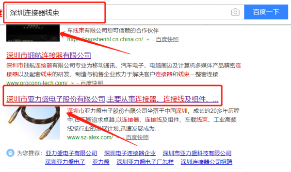 深圳市亞力盛電子股份有限公司用我司企業(yè)連接器線束的網(wǎng)站優(yōu)化產(chǎn)品,其SEO關(guān)鍵詞有連接器線束。一對(duì)一定制服務(wù),產(chǎn)品經(jīng)理在線支持,無(wú)憂售后,適用于各個(gè)企業(yè),提供一站式網(wǎng)絡(luò)營(yíng)銷服務(wù)。百度搜索引擎優(yōu)化,提升品牌關(guān)鍵詞的正面內(nèi)容信息展現(xiàn),體現(xiàn)良好的口碑宣傳。深圳市亞力盛電子股份有限公司成立于2018年,是經(jīng)深圳市市場(chǎng)監(jiān)督管理局審核的有資質(zhì)的公司,其統(tǒng)一社會(huì)信用代碼:91440300MA5F0LK20M。公司地址:深圳市光明新區(qū)公明街道公明辦事處李松蓢第一工業(yè)區(qū)129號(hào)四棟第三、四層。