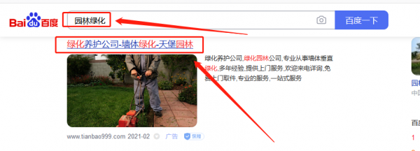 深圳市天*園林有限公司百度排名快照案例欣賞