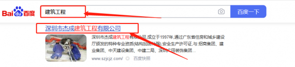 深圳市杰*建筑工程有限公司搜索引擎推廣案例欣賞