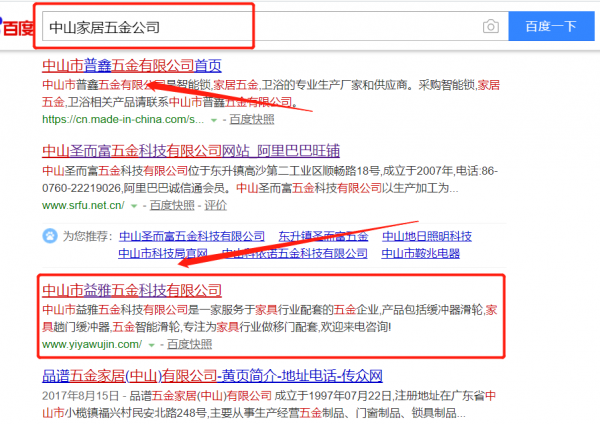 我們公司與中山市益雅五金科技有限公司合作中,對(duì)這個(gè)公司所經(jīng)營(yíng)的家居五金這個(gè)行業(yè)提供了關(guān)鍵詞搜索排名,與該公司的合作,更多的客戶(hù)讓我們公司為其提供關(guān)鍵詞搜索排名,通過(guò)每一次合作,我們公司不斷完善自己,同時(shí)希望合作伙伴在經(jīng)營(yíng)的路上越來(lái)越好。