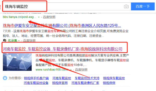 我們公司與珠海銳視保科技有限公司合作中,對這個公司所經(jīng)營的車輛監(jiān)控這個行業(yè)提供了百度快照排名,與該公司的合作,更多的客戶讓我們公司為其提供百度快照排名,通過每一次合作,我們公司不斷完善自己,同時希望合作伙伴在經(jīng)營的路上越來越好。