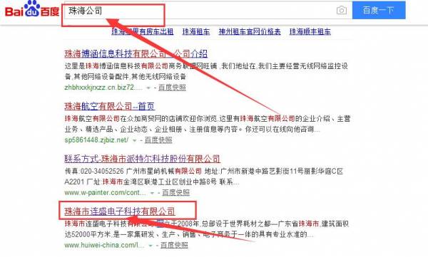 珠海市連*電子科技有限公司同我公司簽署百度快照排名事宜