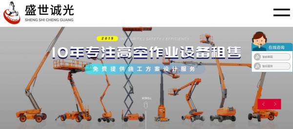 北京盛世誠光機(jī)械設(shè)備租賃有限公司選用我司企業(yè)設(shè)備租賃行業(yè)的網(wǎng)站優(yōu)化產(chǎn)品,其SEO關(guān)鍵詞有 盛世誠光,升降車.升降機(jī),升降平臺(tái),高空作業(yè)車,高空作業(yè)平臺(tái),登高車,舉高車,剪叉式升降機(jī)。其特點(diǎn)是用很合適的展示方式、展示效果、站點(diǎn)框架,把客戶及其用戶很關(guān)心的問題突出表現(xiàn);并以簡潔明朗的設(shè)計(jì)風(fēng)格,清晰展現(xiàn)公司水平實(shí)力,確保一秒抓住目標(biāo)用戶眼球,給用戶留下良好的第一印象。北京盛世誠光機(jī)械設(shè)備租賃有限公司成立于2009年,是經(jīng)北京市市場(chǎng)監(jiān)督管理局審核的有資質(zhì)的公司,其統(tǒng)一社會(huì)信用代碼:911101156977355080 。公司地址:北京市大興區(qū)欣美街嘉悅廣場(chǎng)7號(hào)樓1510。