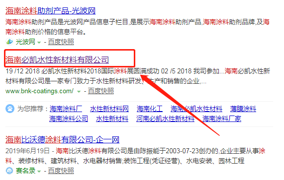 我們公司與海南必凱水性新材料有限公司合作中,對這個公司所經(jīng)營的涂料這個行業(yè)提供了SEO推廣,同時讓我們積累到更多的經(jīng)驗,與海南必凱水性新材料有限公司建立了友好的合作伙伴的關(guān)系,也提高了海洋網(wǎng)絡(luò)在同行業(yè)的知名度,提高了海南必凱水性新材料有限公司在同行業(yè)的知名度,發(fā)展越來越好。