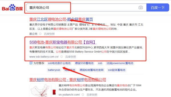 我們公司與重慶斯*電器有限公司合作中,對這個公司所經營的電池這個行業(yè)提供了快速排名,與該公司的合作,更多的客戶讓我們公司為其提供快速排名,通過每一次合作,我們公司不斷完善自己,同時希望合作伙伴在經營的路上越來越好。