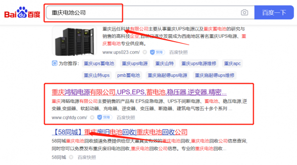我們公司與重慶鴻*電源有限公司合作中,對(duì)這個(gè)公司所經(jīng)營(yíng)的電池這個(gè)行業(yè)提供了快速排名,與該公司的合作,更多的客戶讓我們公司為其提供快速排名,通過(guò)每一次合作,我們公司不斷完善自己,同時(shí)希望合作伙伴在經(jīng)營(yíng)的路上越來(lái)越好。