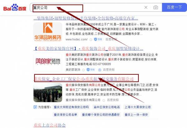 重慶振*保安服務有限公司百度關鍵詞排名最快上詞效果展示