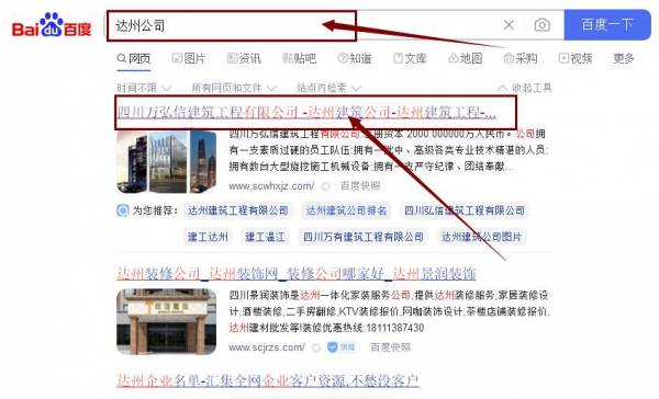 四川萬*信建筑工程有限公司百度關(guān)鍵詞排名最快上詞效果展示