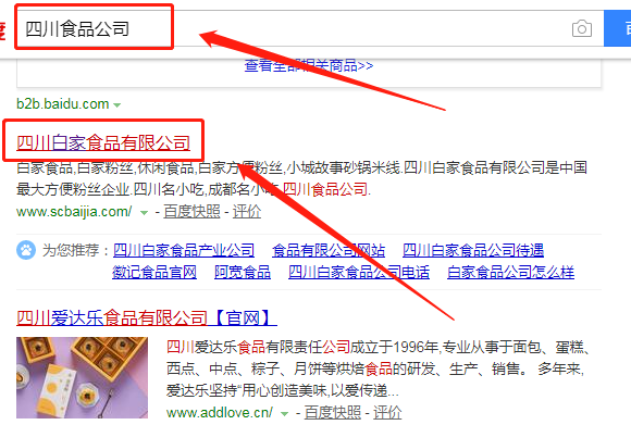 四川白家食品有限公司跟本公司簽訂百度快照排名項(xiàng)目