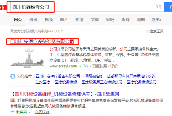 我們公司與四川仁安醫(yī)療設(shè)備維修有限公司合作中,對這個公司所經(jīng)營的機器維修這個行業(yè)提供了搜索引擎優(yōu)化推廣,與改公司的合作,更多的客戶讓我們公司為其提供搜索引擎優(yōu)化推廣,通過每一次合作,我們公司不斷完善自己,同時希望合作伙伴在經(jīng)營的路上越來越好。