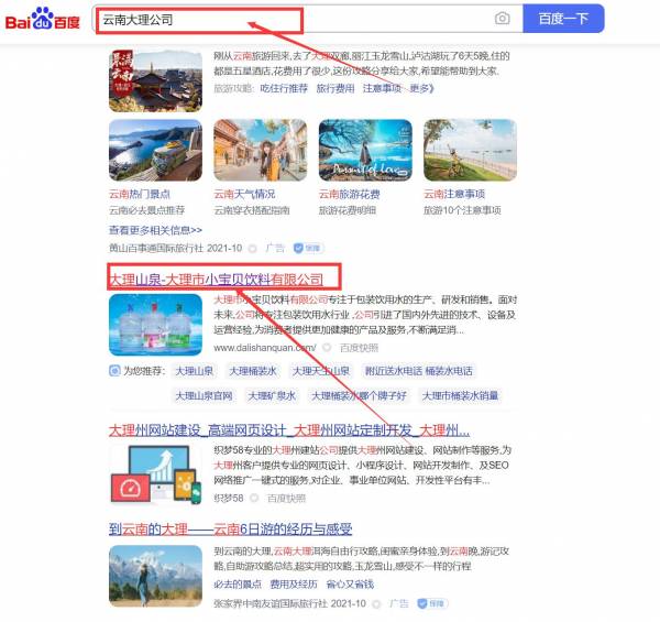 大理市*寶貝飲料有限公司網(wǎng)站優(yōu)化最快上詞效果展示