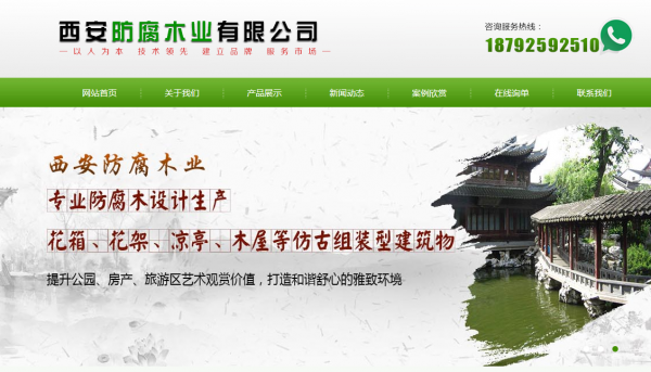 西*防腐木業(yè)有限公司選用我司企業(yè)網(wǎng)站設計優(yōu)化產(chǎn)品,其seo關(guān)鍵詞為木業(yè),從事防腐木材的生產(chǎn)、加工及防腐木的設計;定制有針對性的SEO優(yōu)化執(zhí)行方案,根據(jù)盈利模式和核心產(chǎn)品選擇更適合的精準關(guān)鍵詞。配備專業(yè)SEO優(yōu)化團隊,項目前期做好市場、企業(yè)定位、目標用戶、盈利模式分析,西*防腐木業(yè)有限公司成立于2010年,是經(jīng)西安市市場監(jiān)督管理局審核的有資質(zhì)的公司,其統(tǒng)一社會信用代碼: 91610113**556983786M。公司地址:西安市太華北路延伸段團結(jié)村鐵路口東北角。