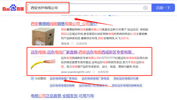 我們公司與遠*電纜西咸新區(qū)專賣有限公司合作中,對這個公司所經(jīng)營的光纖電線這個行業(yè)提供了網(wǎng)絡營銷,與該公司的合作,更多的客戶讓我們公司為其提供關鍵詞搜索排名,通過每一次合作,我們公司不斷完善自己,同時希望合作伙伴在經(jīng)營的路上越來越好。