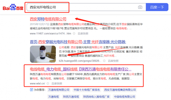 陜西萬*電線電纜有限責(zé)任公司選用我司企業(yè)光纖電線的網(wǎng)站優(yōu)化產(chǎn)品,其SEO關(guān)鍵詞有光纖電線。主要針對百度、搜狗、360等搜索引擎進行快速排名優(yōu)化服務(wù),關(guān)鍵詞排名必要條件是在搜索結(jié)果前3頁,周期15天內(nèi)可優(yōu)化到搜索引擎首頁。陜西萬*電線電纜有限責(zé)任公司成立于1998年,是經(jīng)西安市市場監(jiān)督管理局審核的有資質(zhì)的公司,其統(tǒng)一社會信用代碼:91610000**26518616。公司地址:陜西省西咸新區(qū)灃西新城馬王街道灃靈路北段88號。