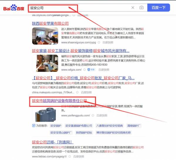 延安市延*鍋爐設(shè)備有限責(zé)任公司網(wǎng)站排名保證在首頁效果