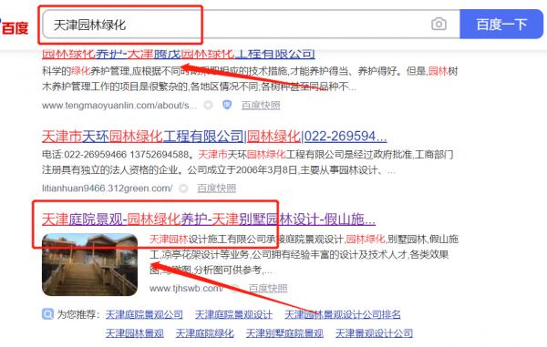 天津*林設(shè)計(jì)施工有限公司網(wǎng)絡(luò)營銷保證在首頁效果